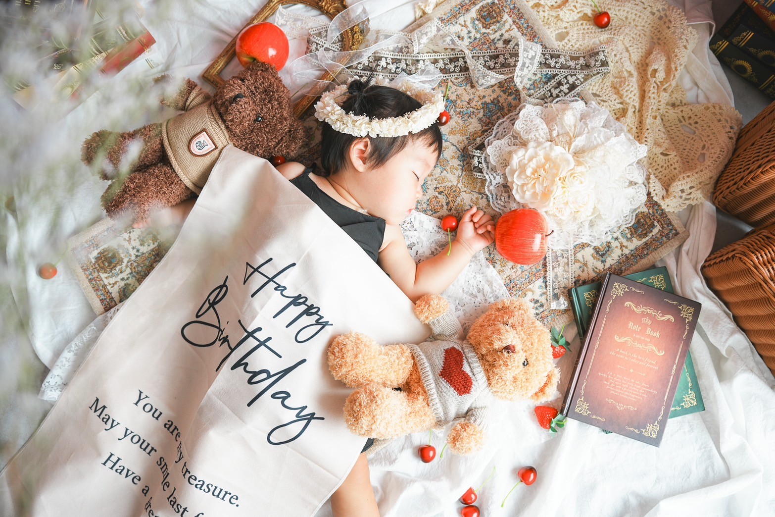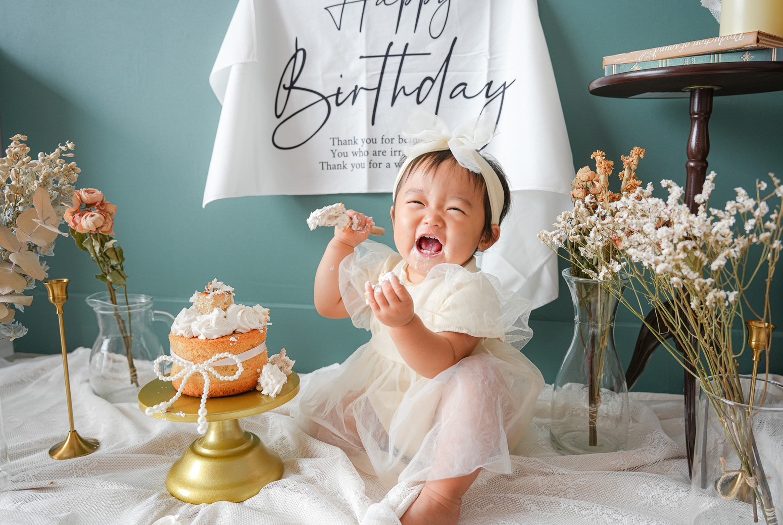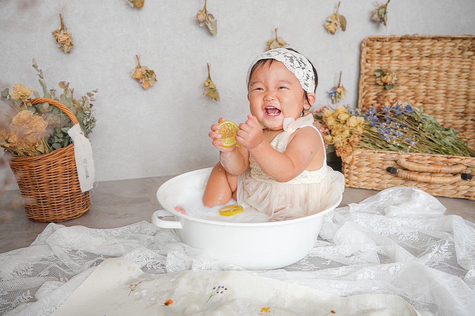 お子さまの大切な1歳のお誕生日を、特別な思い出に残しませんか? 1st Birthdayプランでは、人気の撮影内容をぎゅっと詰め込んだ贅沢なセットをご用意しました。 ふんわり可愛いお誕生日の記念写真はもちろん、スマッシュケーキでの無邪気な笑顔や、ミルクバスでのリラックスタイムまで、1歳ならではの姿をたっぷり撮影いたします。 ご家族の想い出にも、成長の記録にもぴったりの人気プランです。